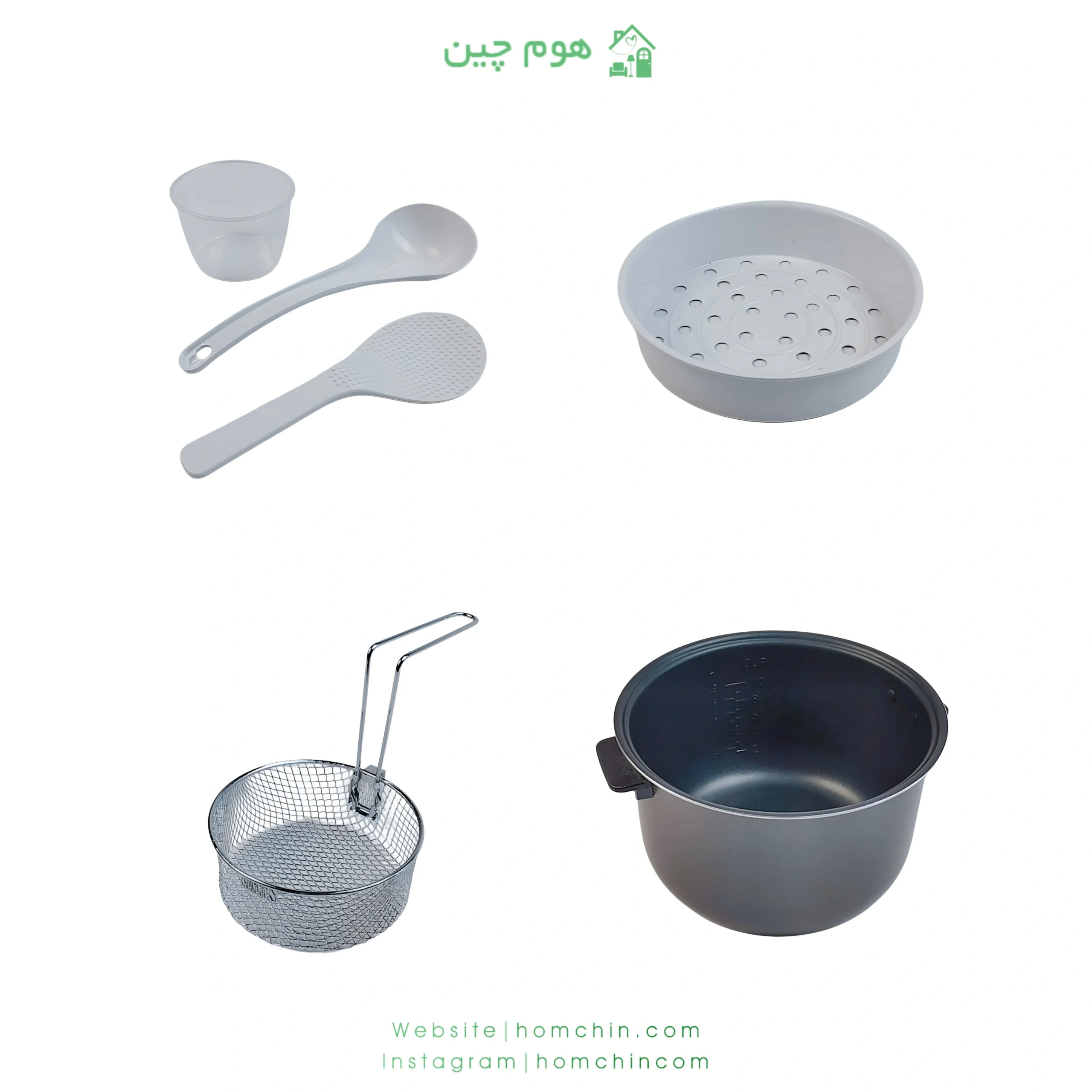 | اقلام همراه | سبد بخارپز، سبد سرخ کن، پیمانه، قاشق و ملاقه |