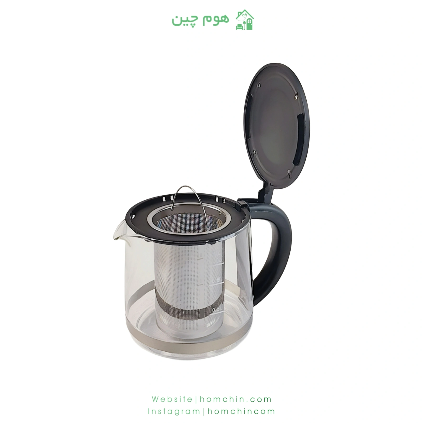 - قوری شیشه ای همراه با فیلتر تفاله گیر